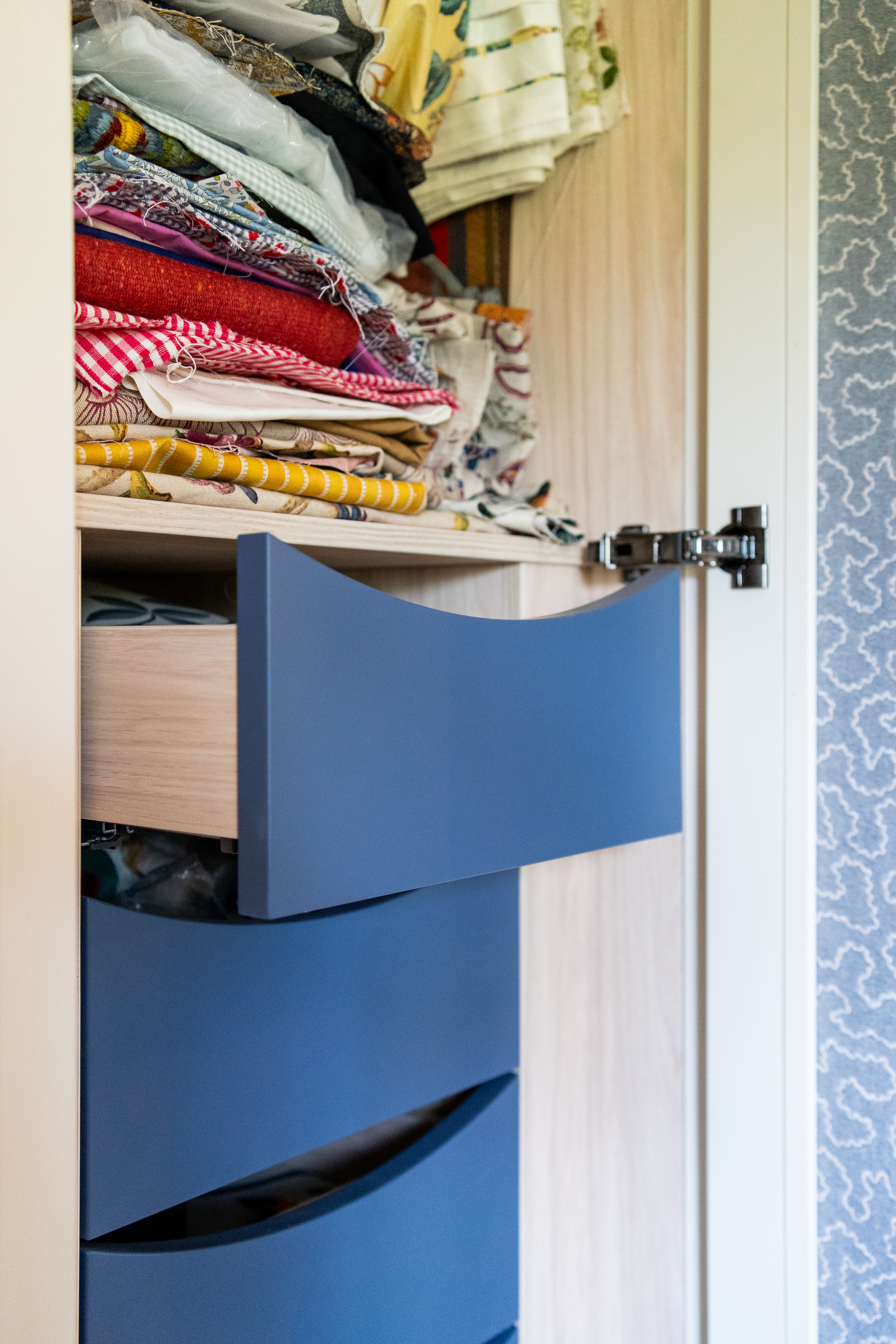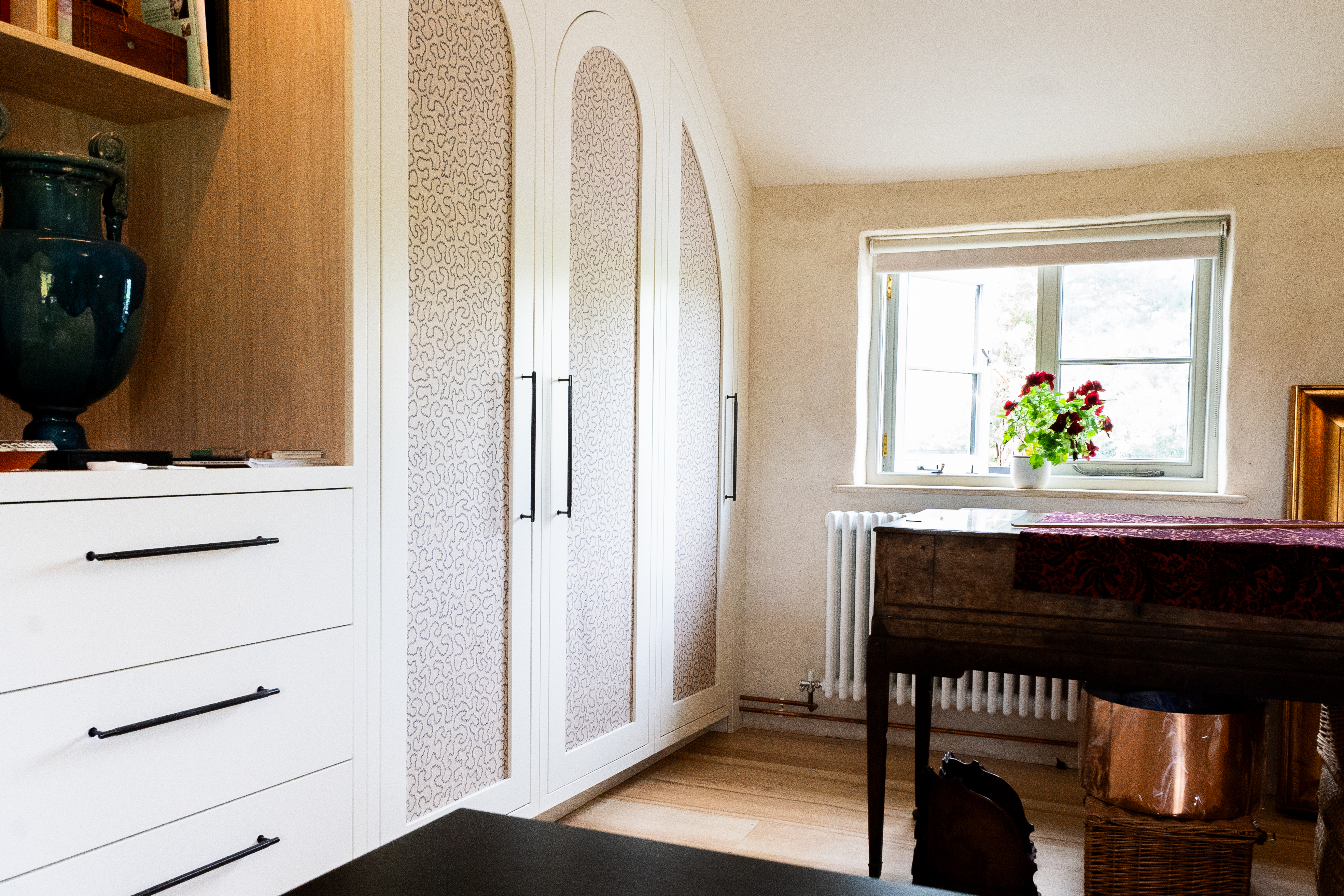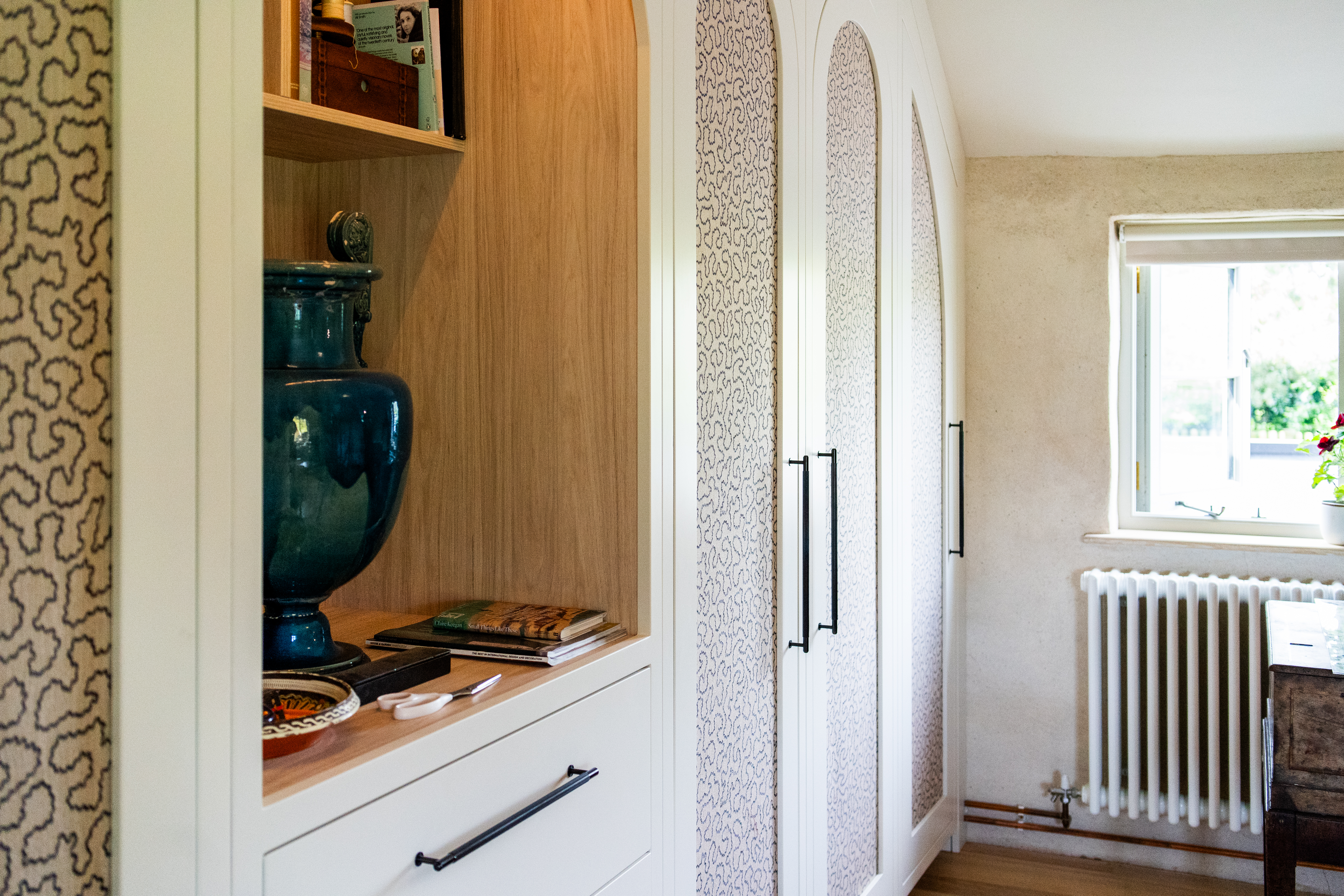 A dream project for a client who needed a stylish yet practical solution for her growing collection of sewing supplies. From fabric rolls and threads to tools and mannequins, we designed a bespoke haberdashery cupboard with a place for everything. We added breathable fabric panels to the doors – not only to keep things fresh but to add a lovely bit of texture and softness to the look. It’s now a hardworking, beautiful feature in her creative space.
