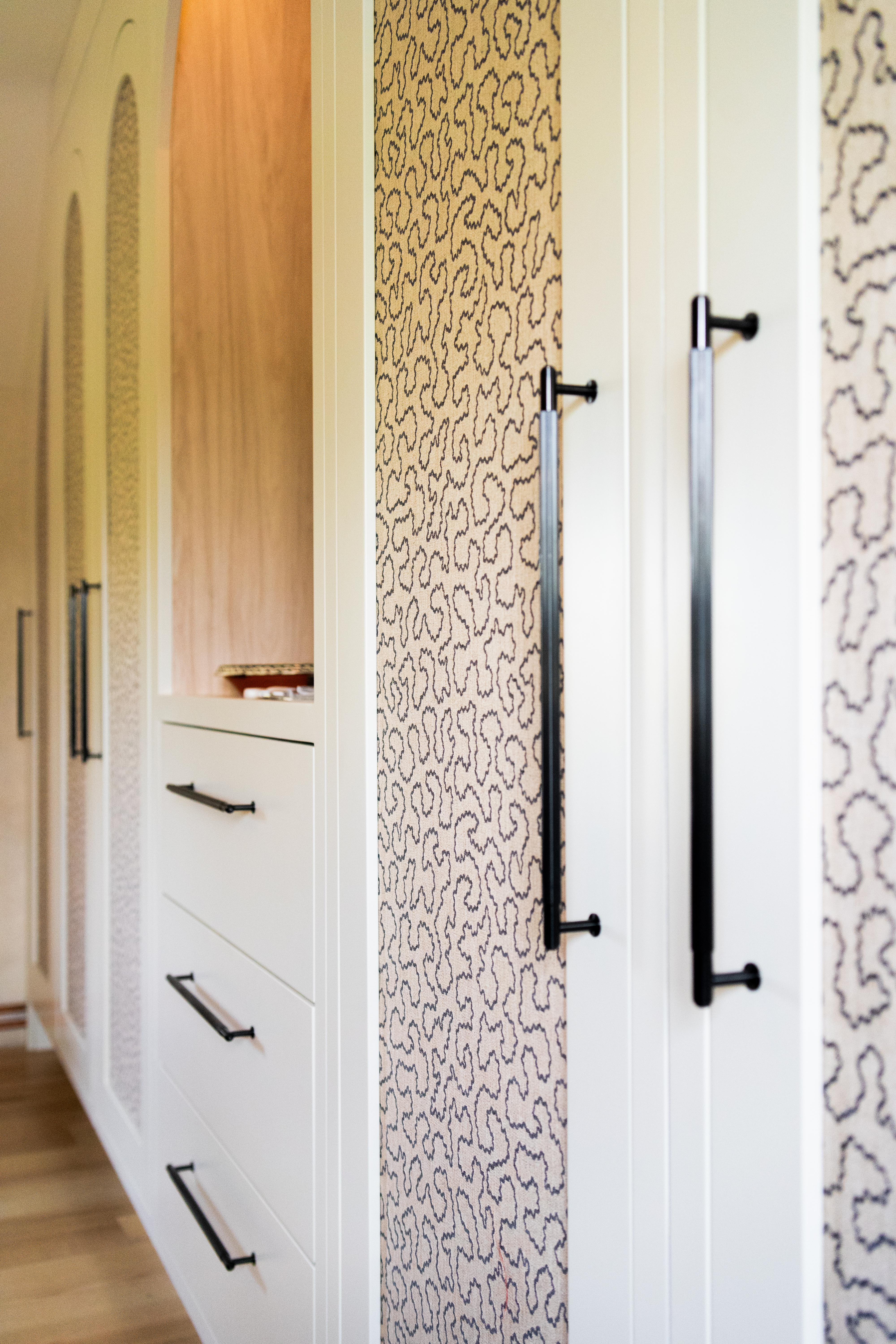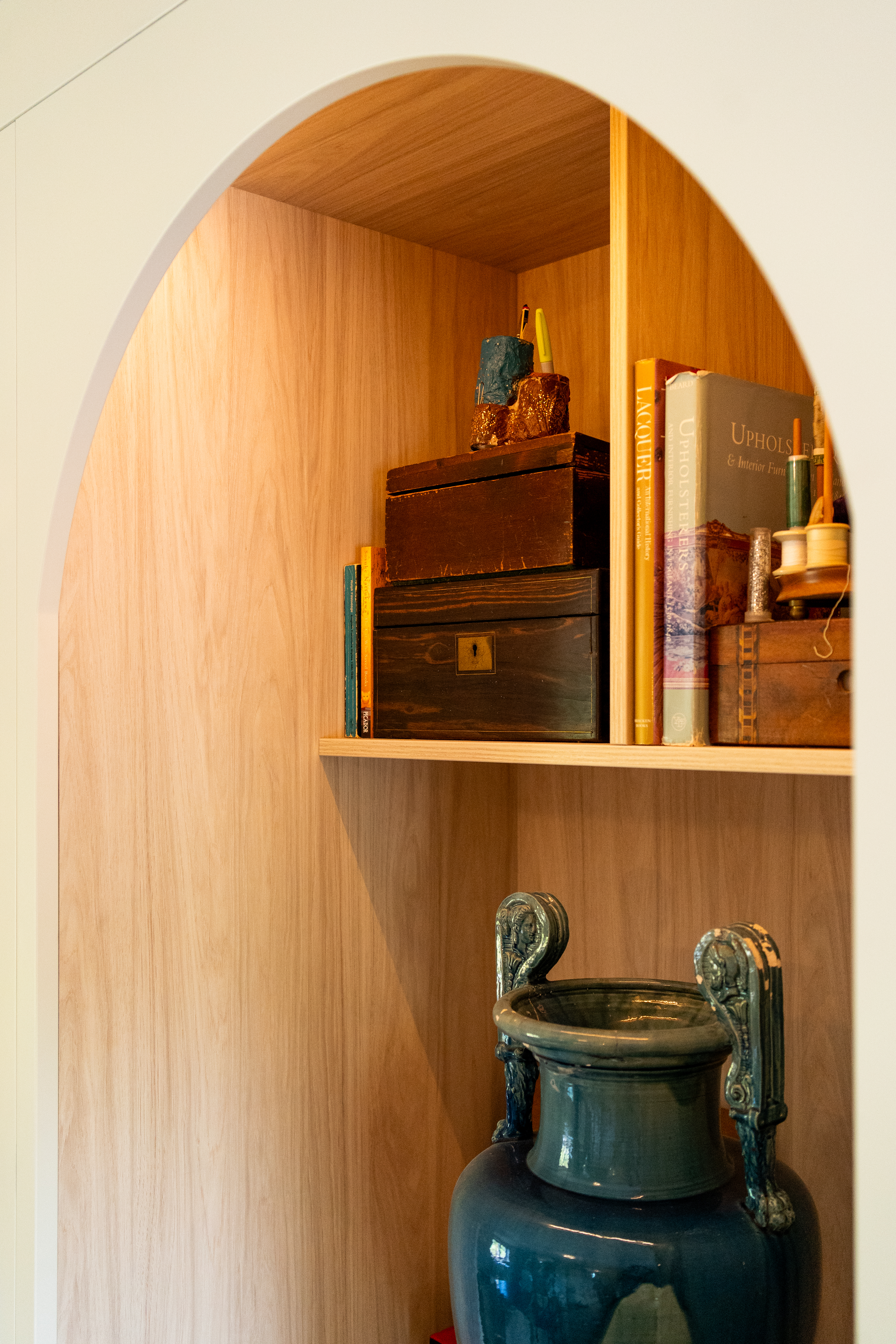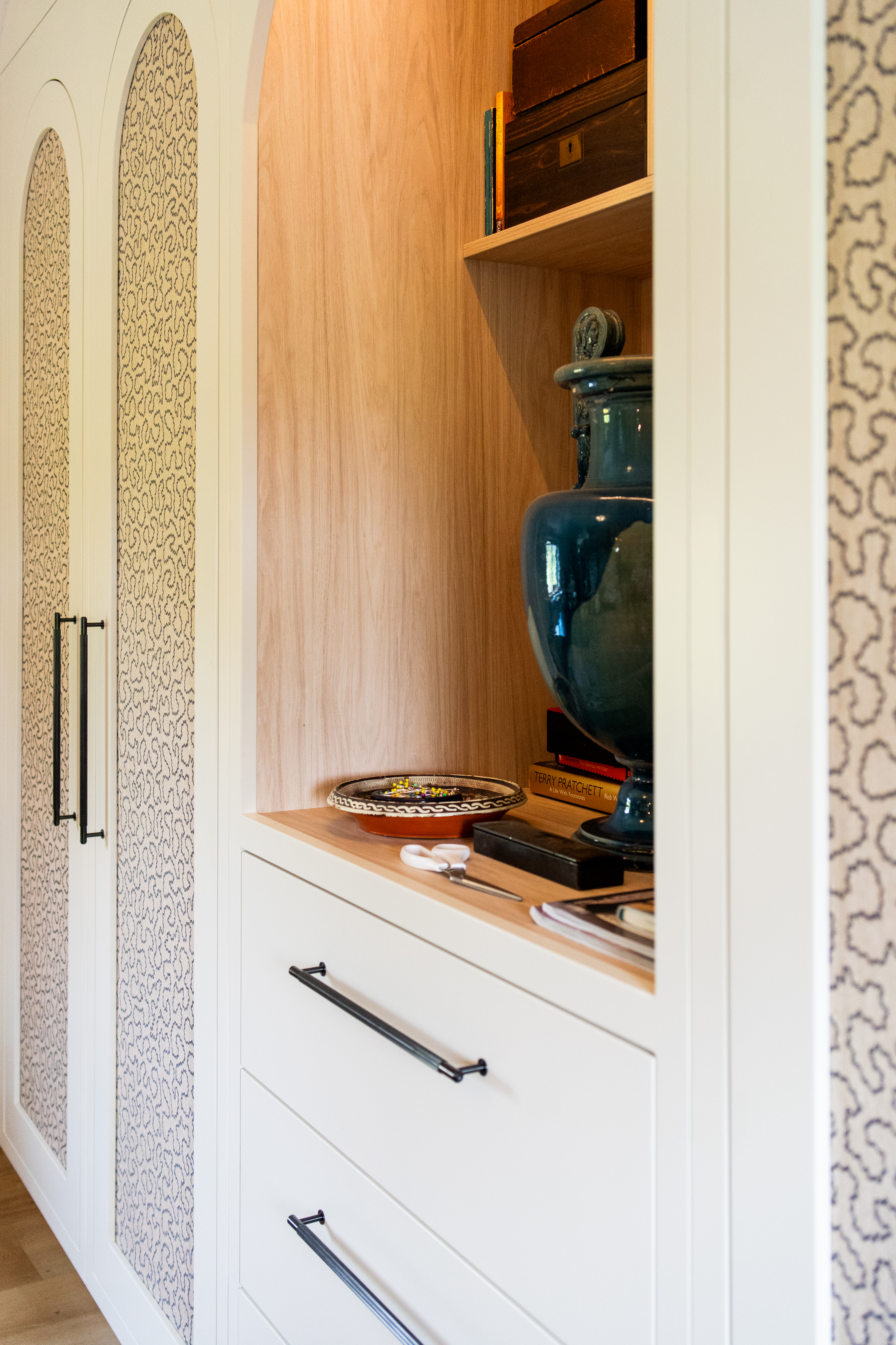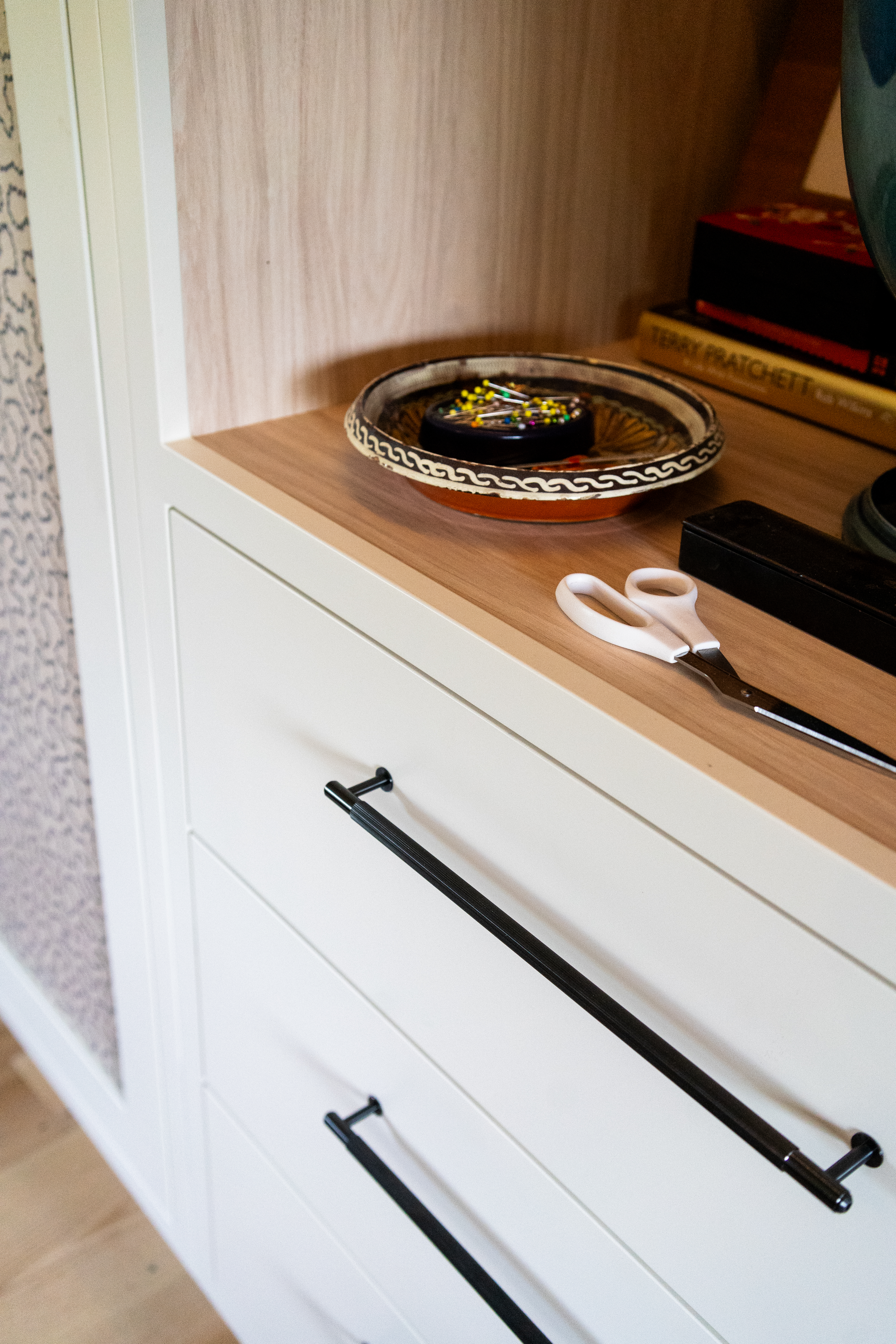 A dream project for a client who needed a stylish yet practical solution for her growing collection of sewing supplies. From fabric rolls and threads to tools and mannequins, we designed a bespoke haberdashery cupboard with a place for everything. We added breathable fabric panels to the doors – not only to keep things fresh but to add a lovely bit of texture and softness to the look. It’s now a hardworking, beautiful feature in her creative space.